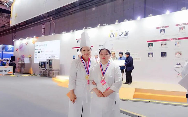 4月1日,福建省新东方技工学校西餐教师陈欣宁在全国第六届HOTELEX“明日之星”厨师大赛总决赛中斩获金奖,西餐教师张天淼荣获大赛银奖!