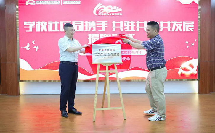 为庆祝建党百年,传承红色基因,扎实开展党史学习教育,充分发挥学校党建“红色引擎作用”。2021年6月29日上午,福建省新东方技工学校隆重举行“学校社区同携手,共驻共建共发展”签约及揭牌仪式。