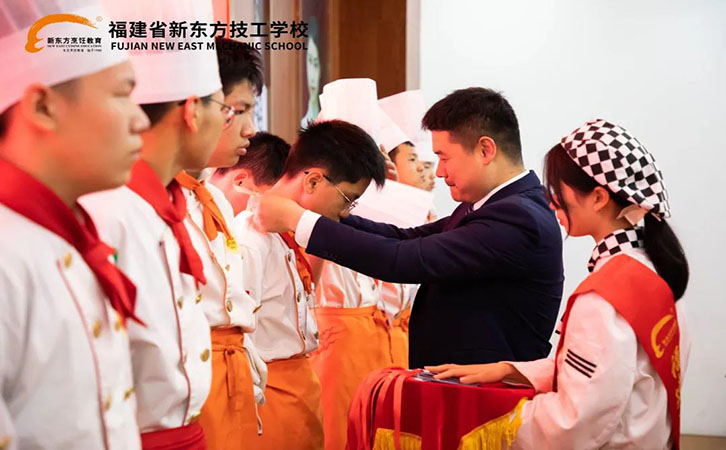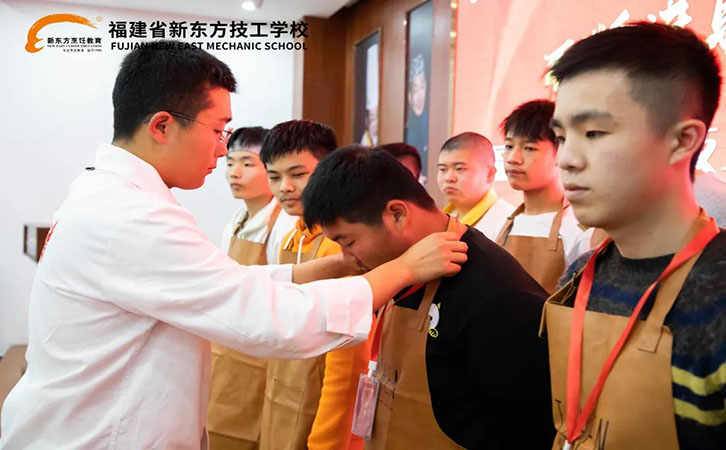 仪式第二项与会领导和班主任老师分别为参加本次选修班的同学们配发学生证及特色专业的订制围裙和工具,希望同学们能够保持一颗谦卑上进的心,不断努力,不辜负家长、老师对你们的期望。