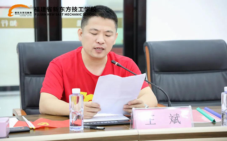 长乐区吴航街道洋锦社区党委书记王斌作重要讲话,他指出,本着相互学习、资源共享、携手共进的原则,长乐区吴航街道洋锦社区委员会与福建省新东方技工学校支部委员会结对共建。希望通过共建活动,能够让学生走出校园、关注自身生活环境、了解社会的重要载体。同时也为双方文明创建工作提供积极有效的帮助,祝愿区校共建能够取得双赢!