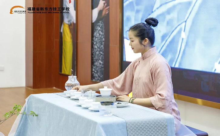 福建省新东方技工学校以茶入膳作为2021年教研的新方向,不仅使菜肴的口感更加的丰富饱满,食材本质也更加健康美味。同时由我校高级茶艺师陈文琼为大家带来一场精美绝伦的茶艺视觉盛宴。