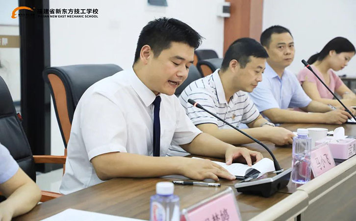 出席此次会议的领导有:福建省新东方技工学校校长杨兵、后勤事业部福州区域公司副总经理崔晓辉、福建省新东方技工学校校区副主任马小飞、福建省新东方技工学校市场部副主任冯梦婷、福建省新东方技工学校财务处主管游小丽、福建省新东方技工学校全体员工。